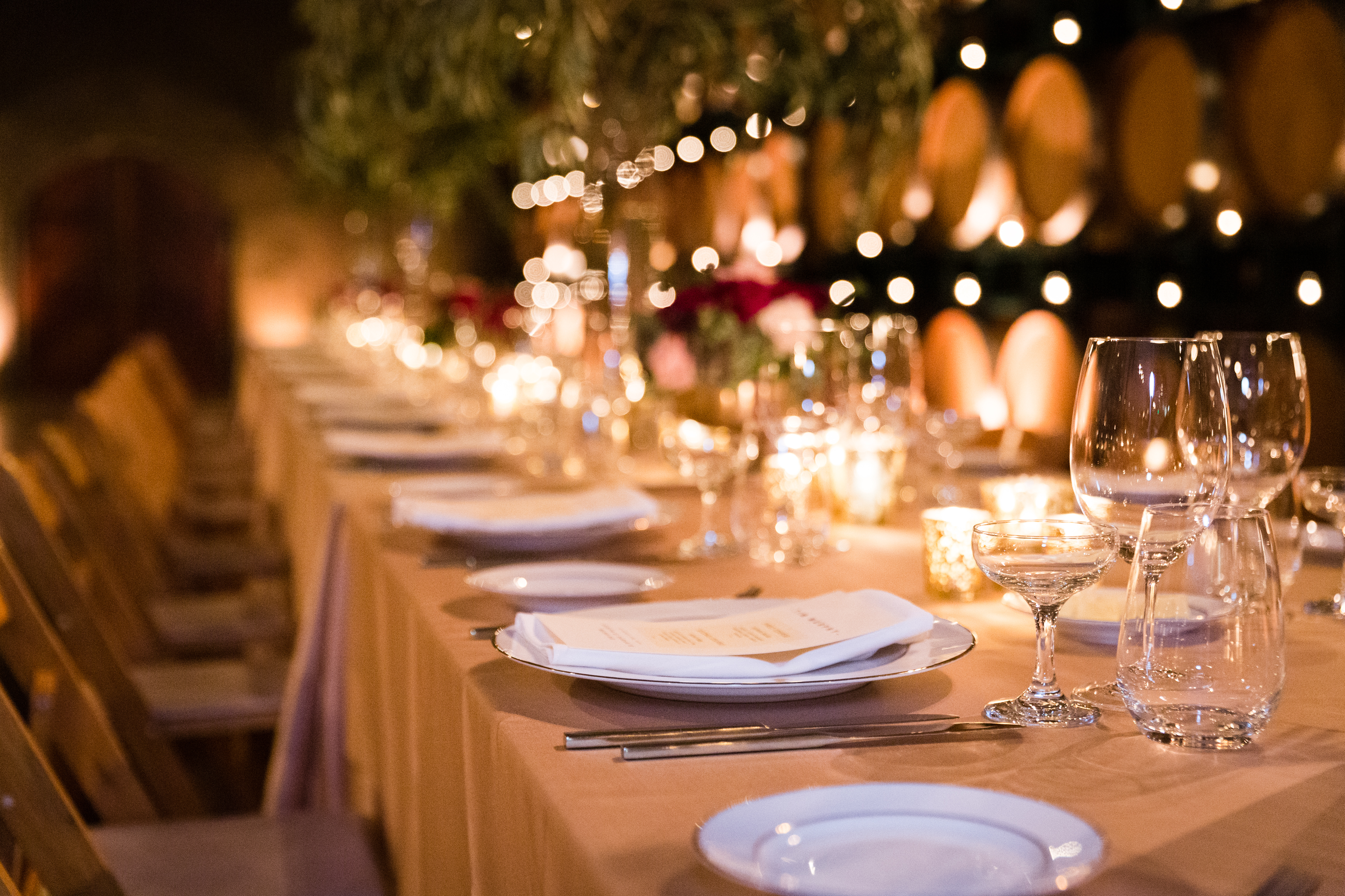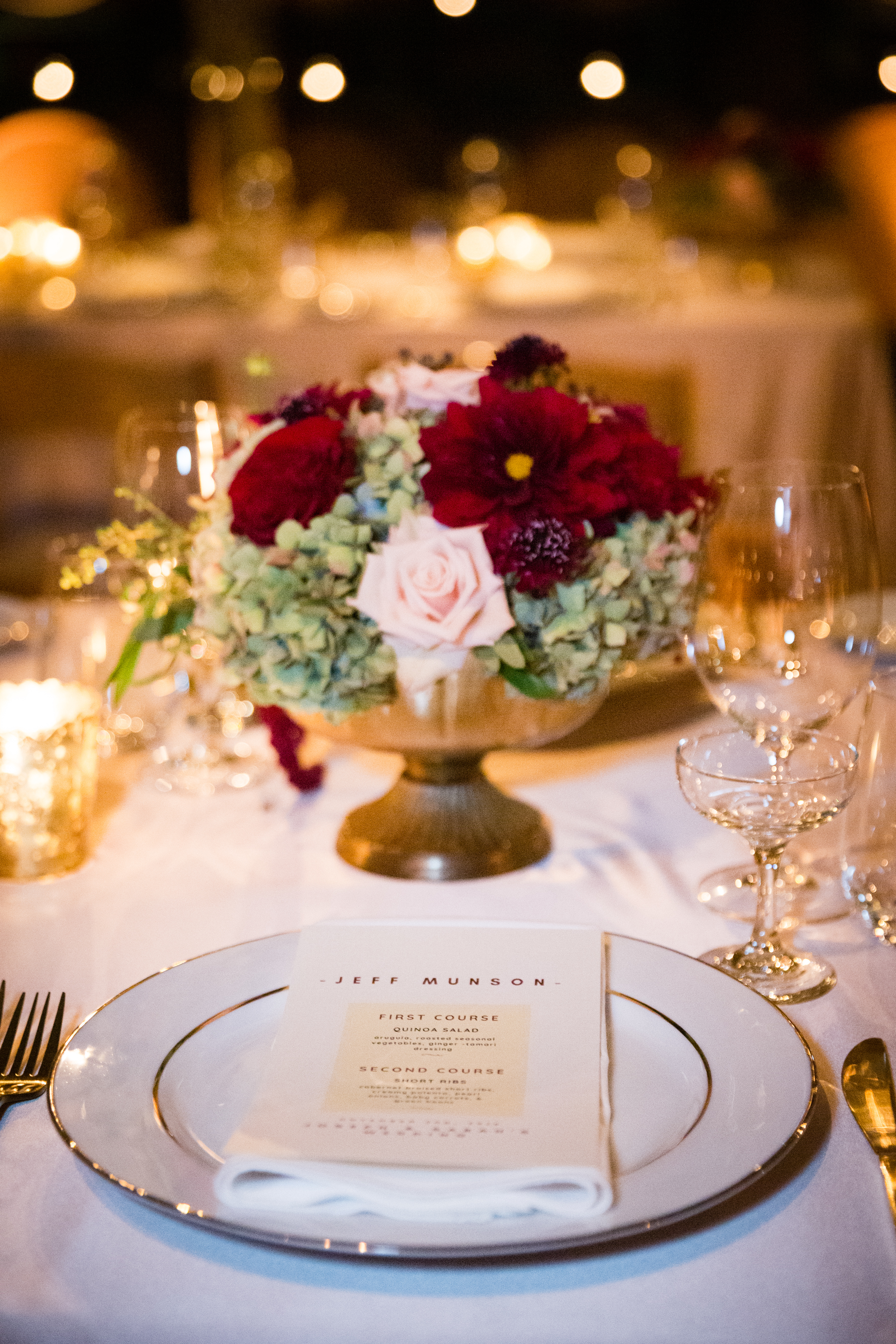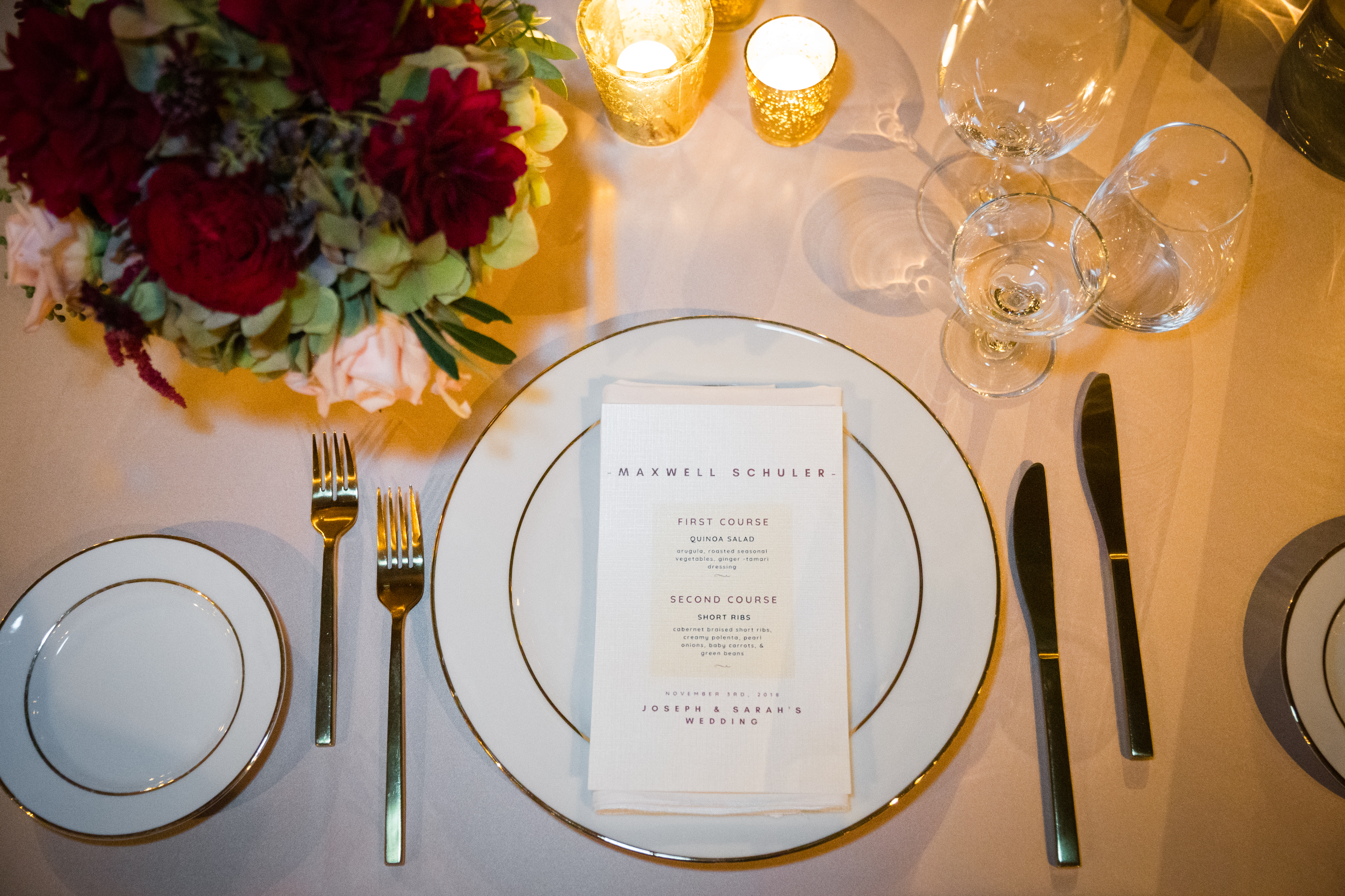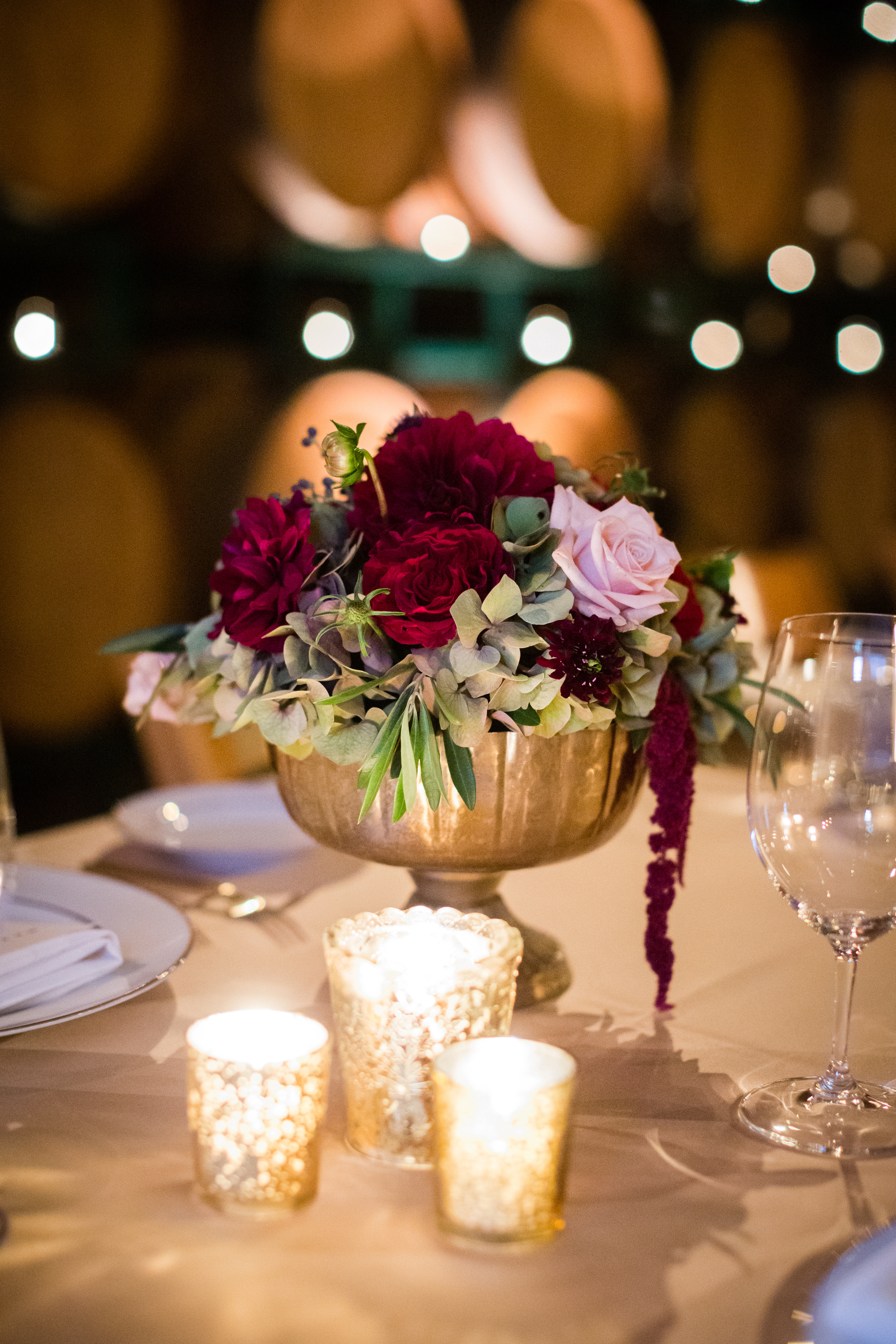 And then we were on to the wedding day! Sarah and Joe have been an item for 15 years. So, needless to say, this day has been highly anticipated by many for a long time. They wanted to throw the biggest party of their life…and that’s what they did! They have been long time club members at Gloria Ferrer Caves & Vineyards, so they knew that was the perfect venue for their wedding. They wanted the best food, the best entertainment and the best décor. And they, got it! They made sure to work with some of wine country’s top-notched vendors to make sure their wedding was one that everyone would remember forever. One of my favorite details from their wedding is that they made each guest a personalized menu card, with their name at the top (which eliminated the need for a separate placecard), and each guest’s specific meal choice (including some special customizations that were made for certain dietary restrictions). This sort of attention to detail is something that can be possible (without driving yourself completely insane) if you spend two years planning your wedding, like Joe and Sarah did. I know that the guests loved that personal attention, making them feel so welcome as they took their seats at the dining table. They finished off the night with a 9 piece dance band, All Star Jukebox, which included a horn section and locally famous Misa Malone, from Beach Blanket Babylon. They kept the dance floor packed all night long!!